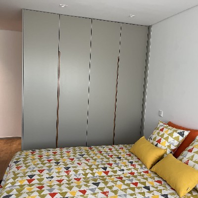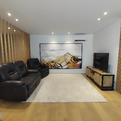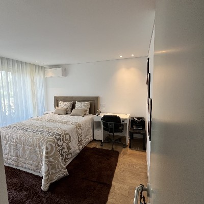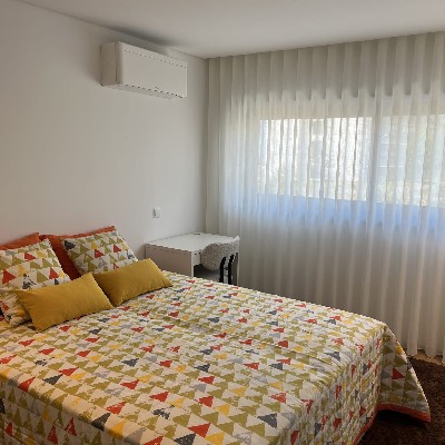 - Suite mobilada com armario embutido, cama e escritorio; cortinas; quadros; suportes para tv; casa de banho c/ base de duche; varanda