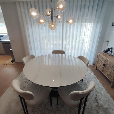 - Sala totalmente decorada e mobiliada; mesa redonda com 6 cadeiras; 3 consolas; 2 bancos decorativos; movel de TV; luminaria; cortinas; sofas relax; quadro, espelho, mini bar e varanda.